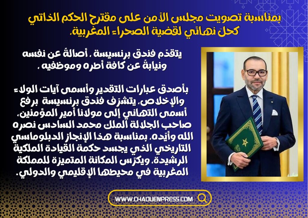 فندق برنسيسة شفشاون يهنئ جلالة الملك بمناسبة اعتماد مقترح الحكم الذاتي كحلّ نهائي لقضية الصحراء المغربية