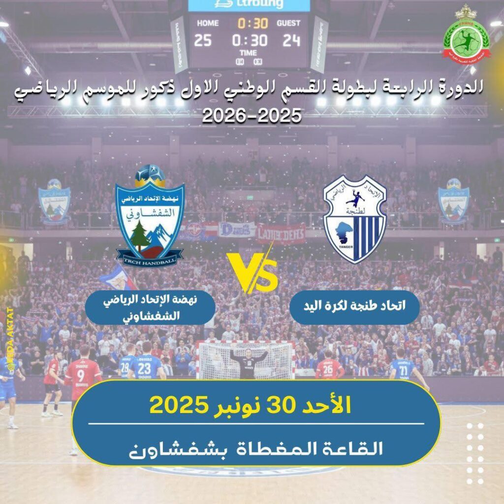 يستعد فريق نهضة الاتحاد الرياضي الشفشاني لكرة اليد لاستقبال نظيره اتحاد طنجة في مباراة مرتقبة، يوم الأحد المقبل على الساعة 15:00 مساء، بالقاعة المغطاة بمدينة شفشاون.