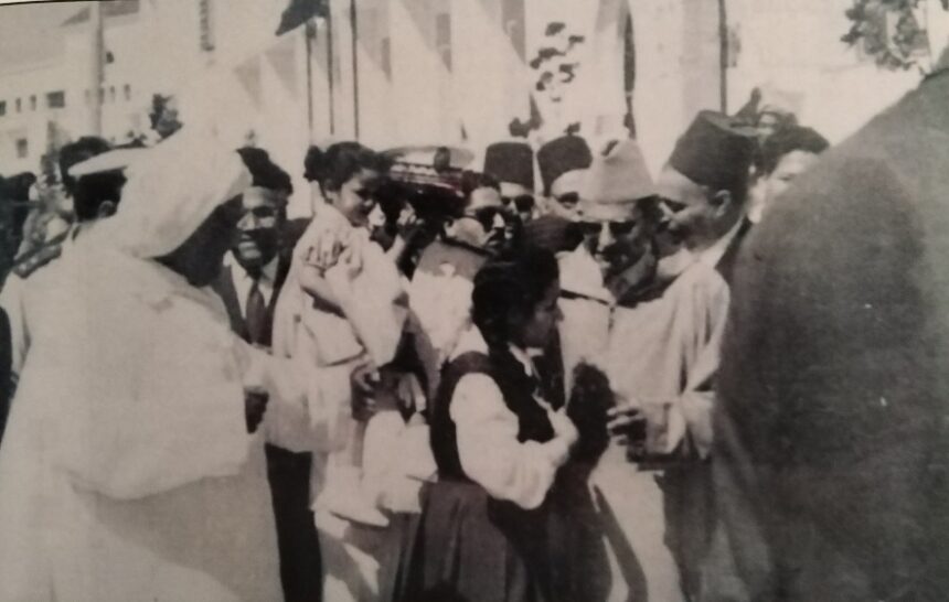 صورة تاريخية خلدت مشهدا مفصليا في مسار السيدة حبيبة العمارتي عند لقائها بالملك محمد الخامس بتطاون فجر الاستقلال.