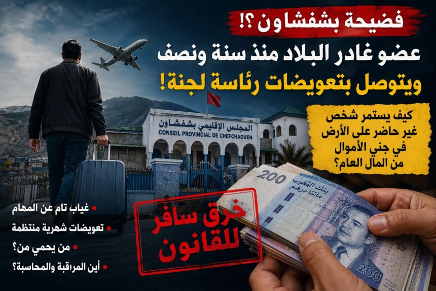 أثار قرار عزل أحد أعضاء المجلس الإقليمي بشفشاون نقاشا واسعا في الأوساط المحلية، بعد تداول معطيات تفيد بأن المعني بالأمر غادر التراب الوطني بشكل غير نظامي منذ أزيد من سنة ونصف، رغم استمرار استفادته من تعويضات مرتبطة برئاسته لإحدى اللجان داخل المجلس.